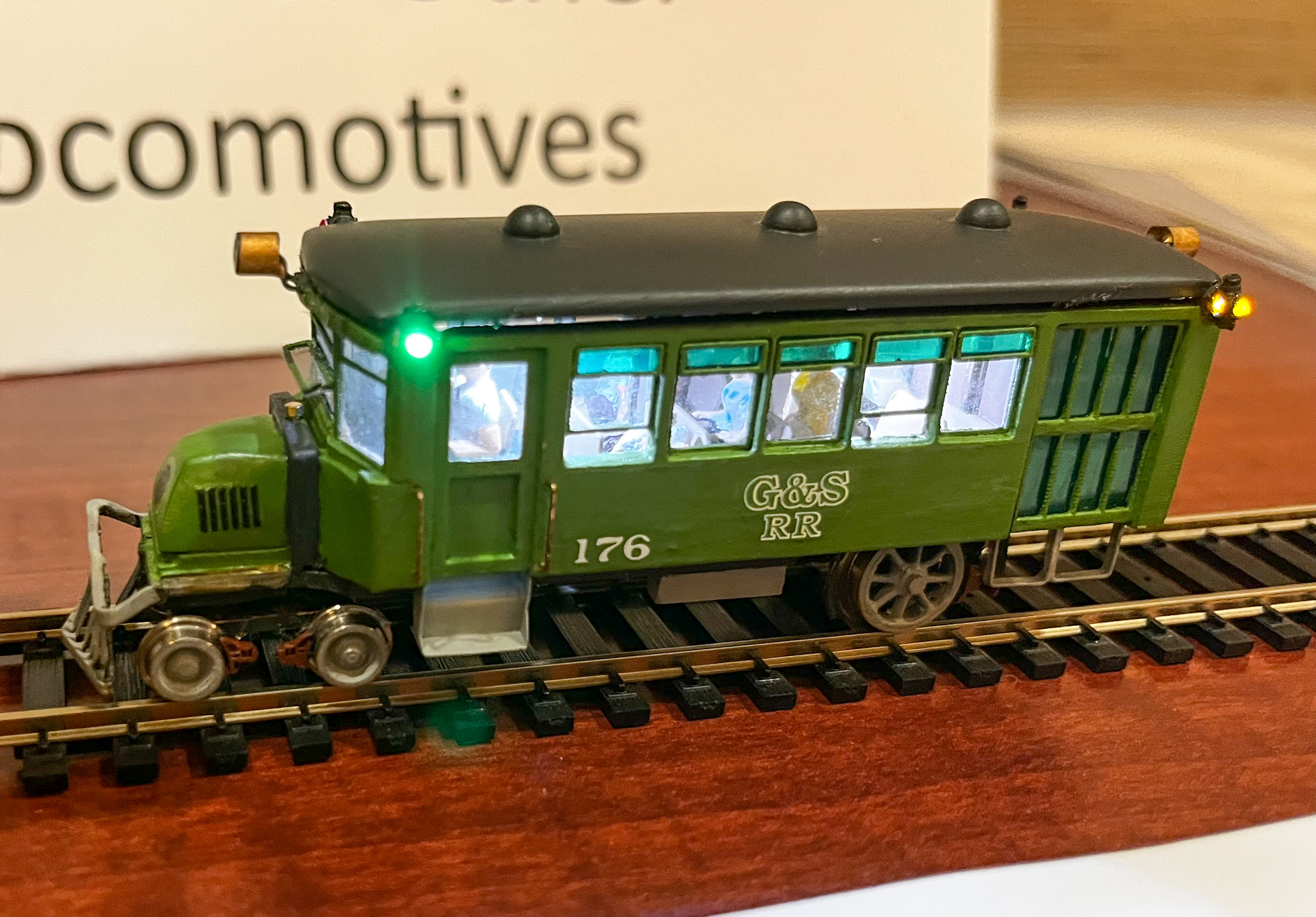 | Gary Butts exceptional scratch built HO railbus, PSR NMRA 2023 Convention, Photographer: Kevin Spady |